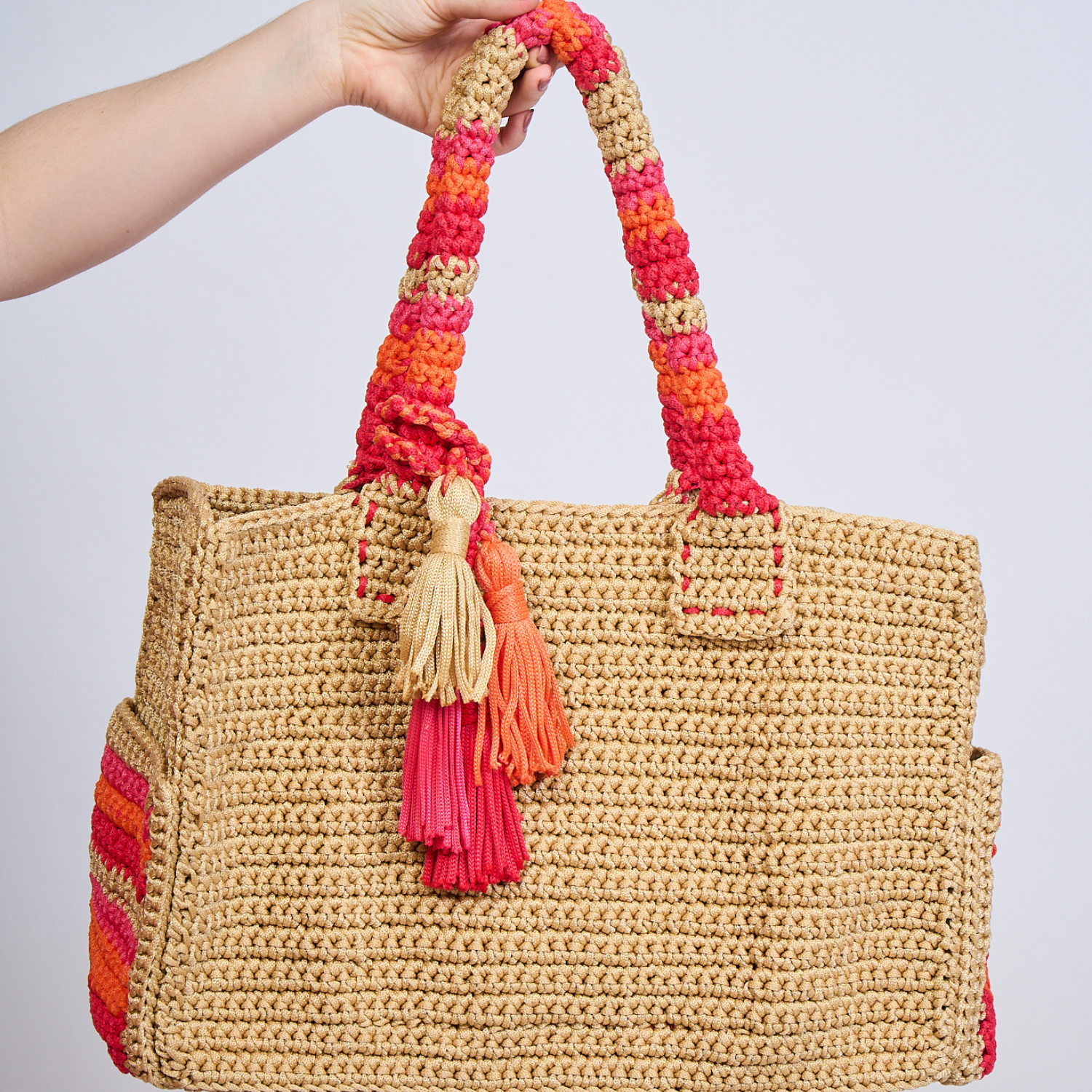 Bolsa de praia croche Laranja e Rosa