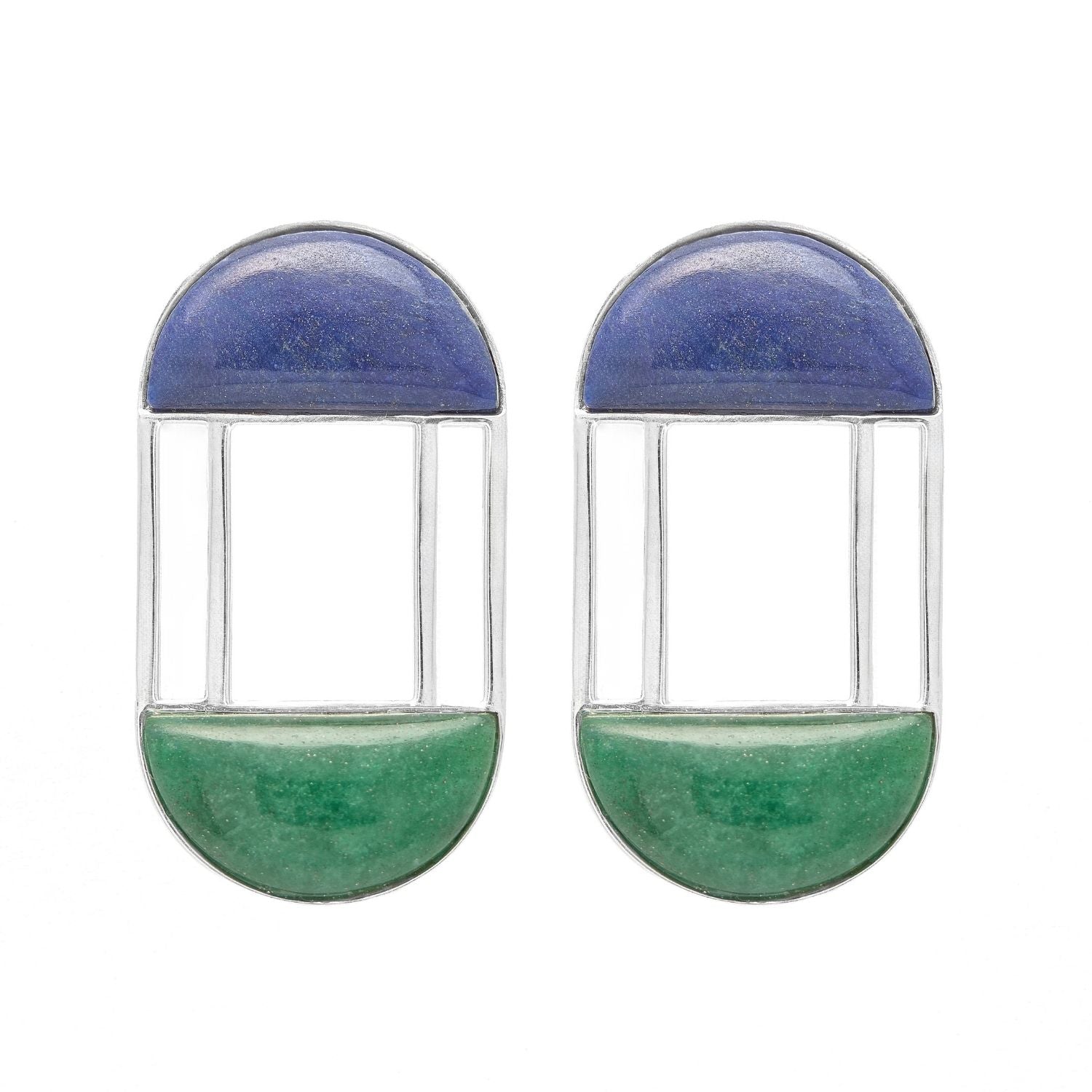 Brinco Origem Prata 925 Quartzo Azul e Quartzo Verde