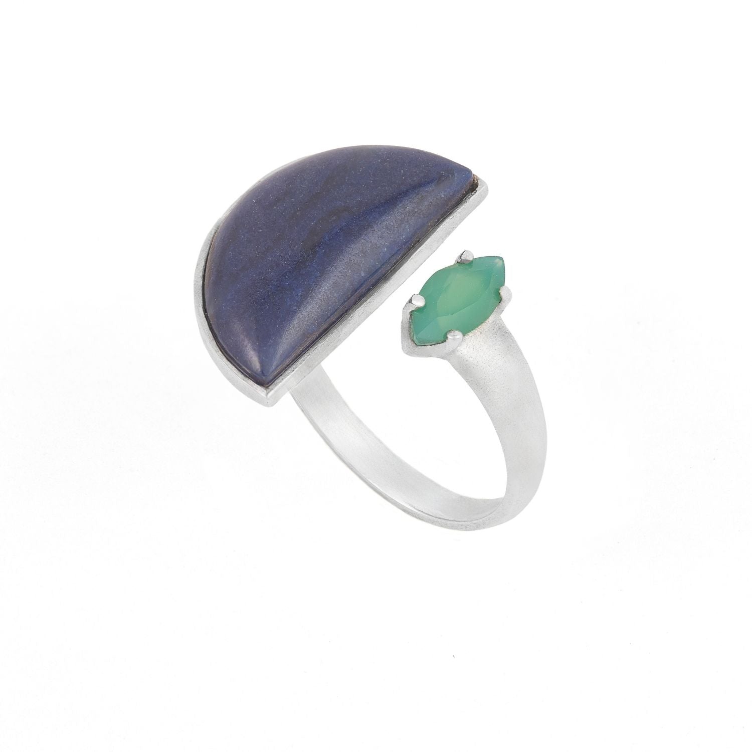 Anel Origem Prata 925 Quartzo Azul e Crisopásio
