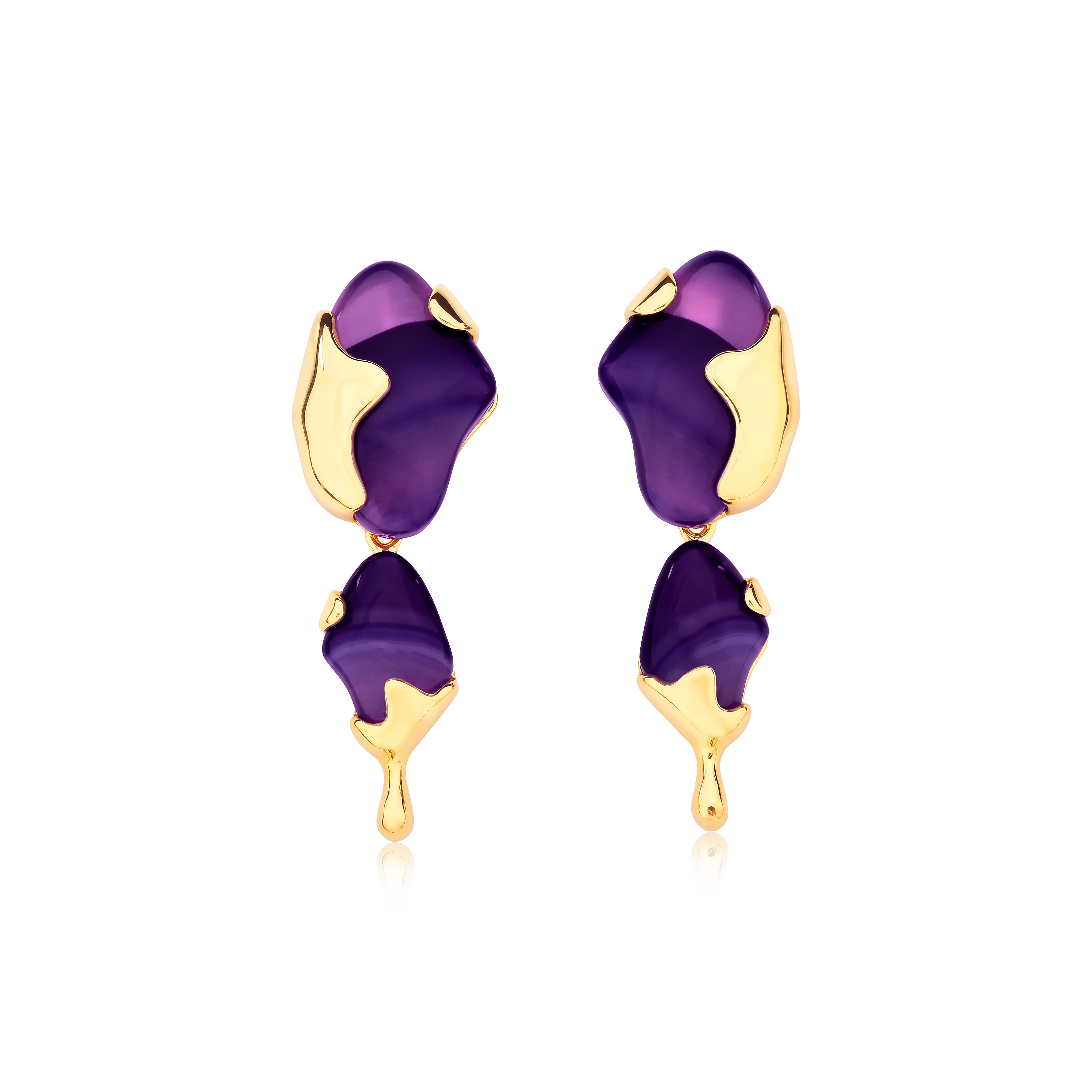 Brinco Duplo Agata Roxa Ouro