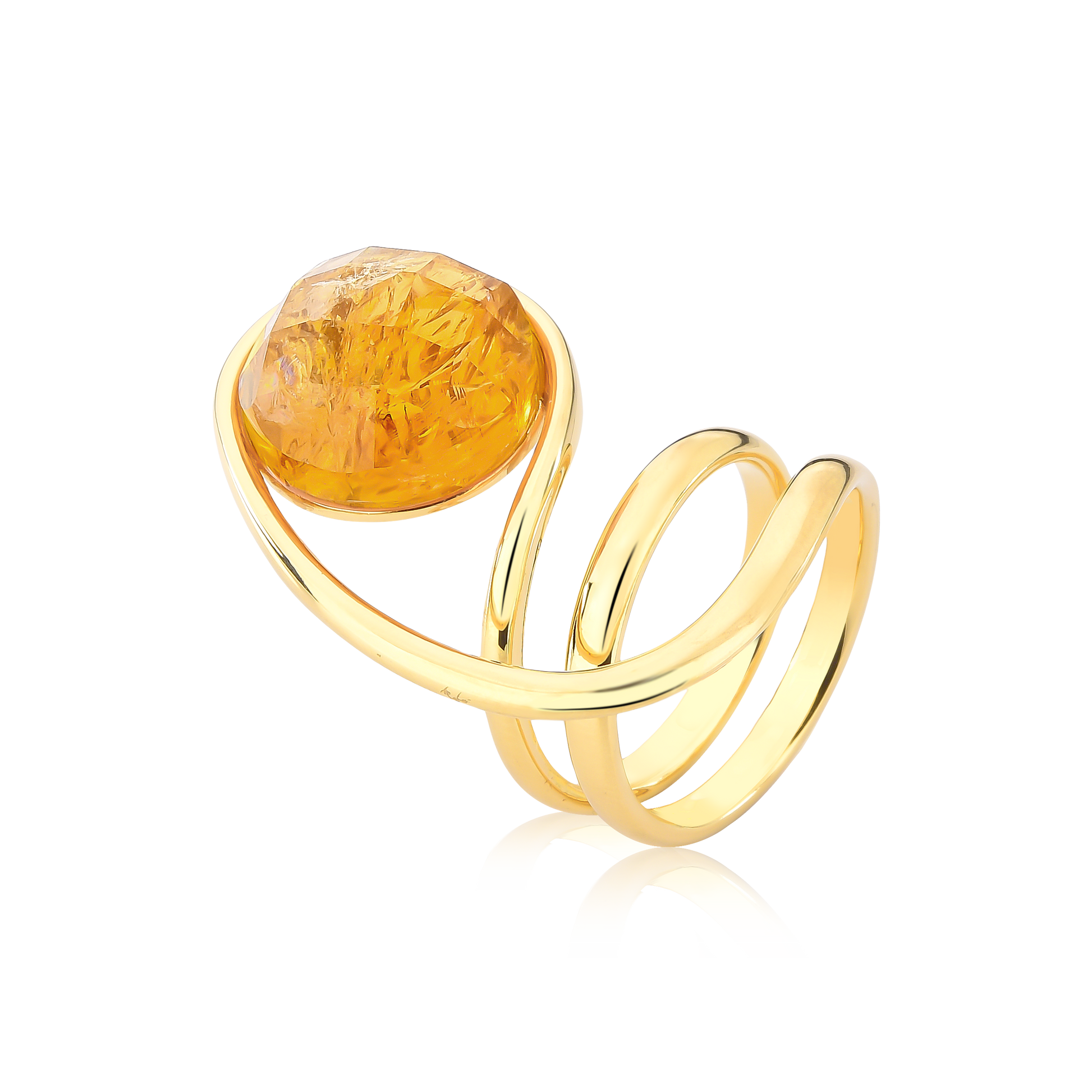 O Anel Citrino Espiral é uma joia de presença marcante, que une movimento, brilho e energia em um design contemporâneo e sofisticado. Seu aro em linhas fluidas envolve o dedo de forma elegante, valorizando o citrino natural como ponto focal da peça.