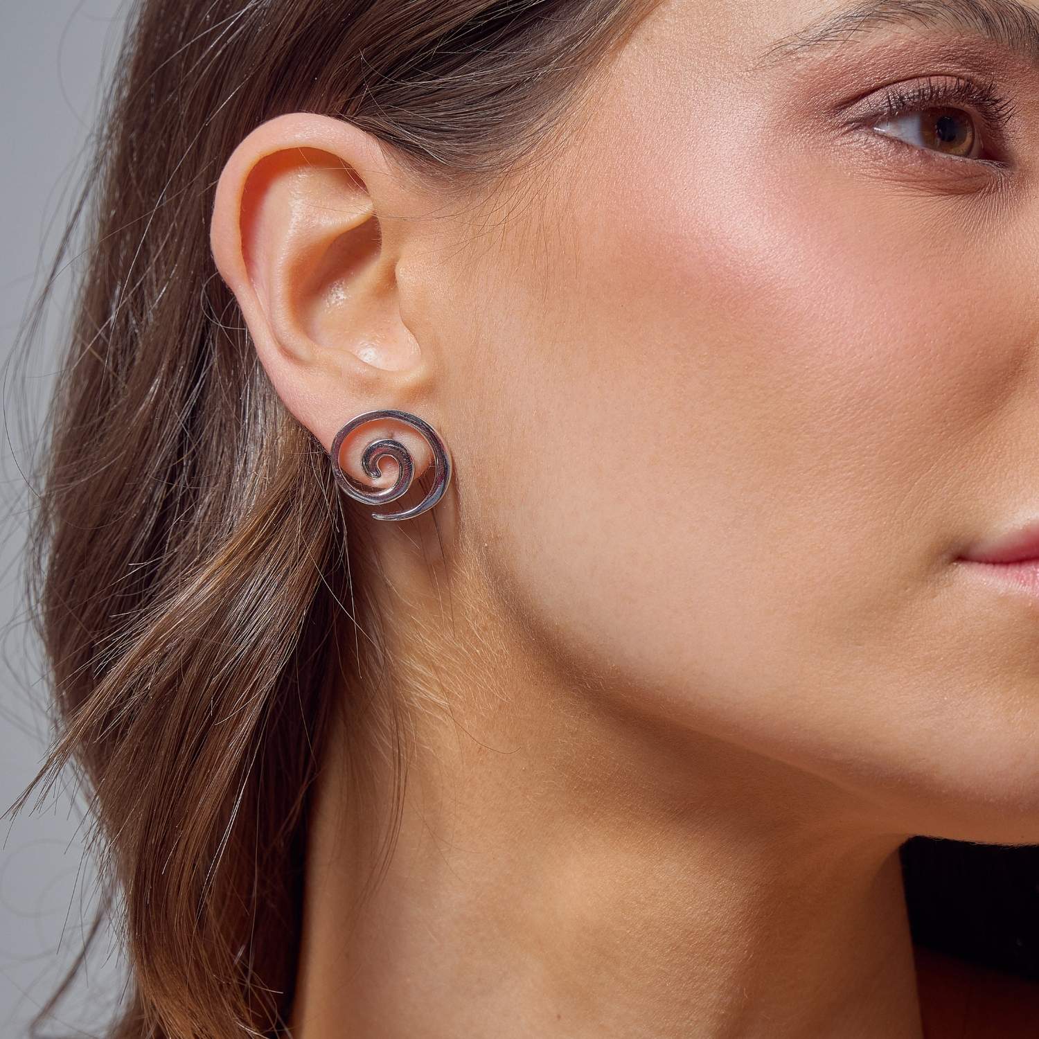 Confeccionado em prata, o acabamento polido realça o brilho do metal e valoriza as curvas orgânicas da espiral, que se adapta perfeitamente ao lóbulo. É um brinco leve, confortável e versátil — ideal para o uso diário, mas com personalidade suficiente para compor produções mais sofisticadas.