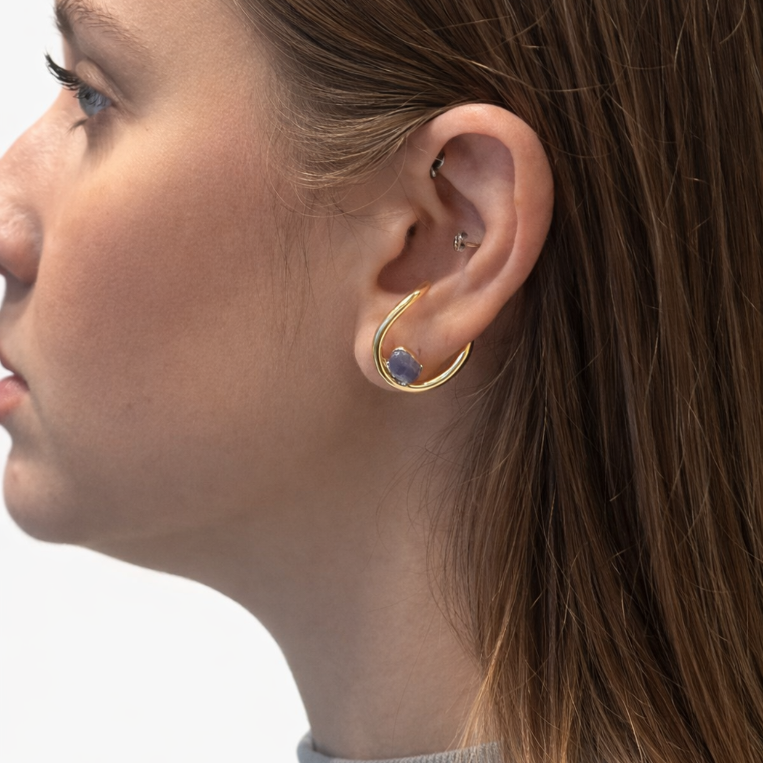 Nosso brinco earcuff com sodalita lapidada em cabochão é a fusão perfeita entre o design contemporâneo e o poder simbólico das pedras naturais. Uma peça autêntica e cheia de personalidade, que une estilo e significado em cada detalhe.